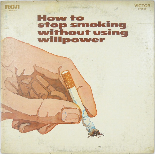 グレートジャケ!!メジャーレコード会社もこの手の物件出してたんですな。「意志の力を使わず禁煙する方法」。初日、二日目、三日目...とトラック別にお節介なインストラクション。結局二ヶ月かけて禁煙に成功する運びになってるらしいですが、こんなにタバコの話ばかり聞いてたら、すぐ吸いたくなっちゃうと思うんすけどねえ。豪華ゲートフォールド。 RCA Victor LSP-4311 LP US盤 70年 media: VG++ sleeve: VG ♪試聴:http://manuera.com/sonota/audio_files/3442.mp3