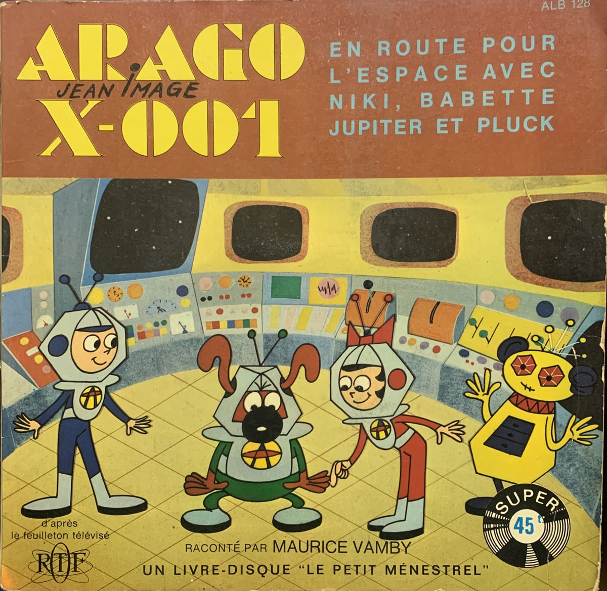 モンドミュージック2001でも紹介されているJean Imageによる60年代のアニメ「ARAGO X-001」のレコード付絵本。時代を感じさせるヘッポコな宇宙船&ロボ&メカにノックアウト!Fred Freedによる電子音楽も最高なり。盤質イマイチ特価!