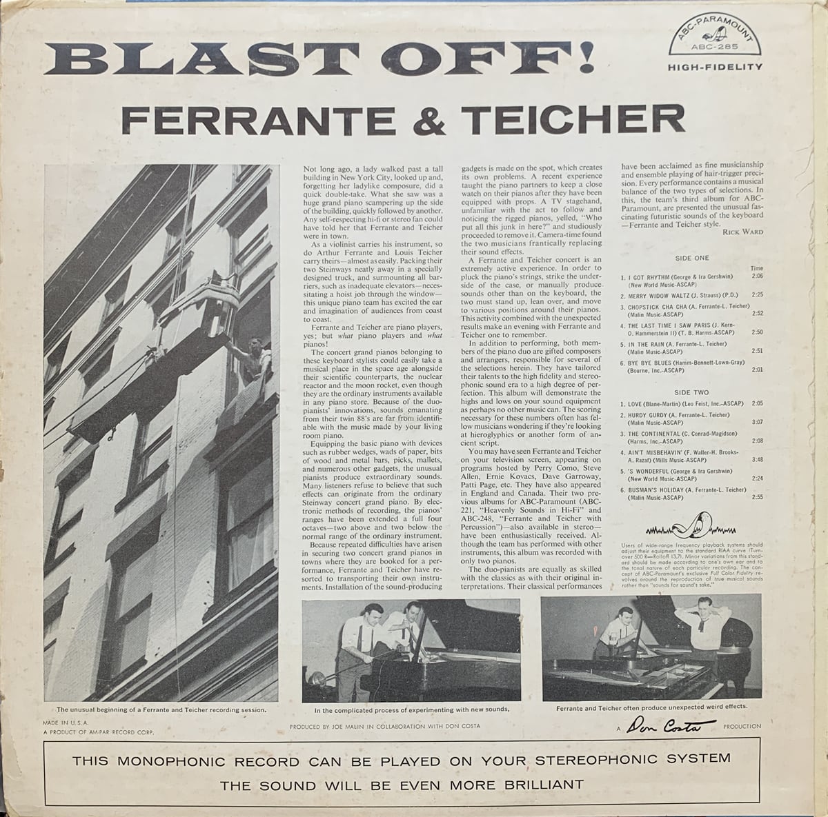 モンド本、リサーチでもお馴染みの大名作。パーカッシブなプリペアード・ピアノと特殊なマイキングや録音方法、テープ操作、ディレイエフェクトなどによるマニュファクチュアルなスペースサウンドは、まさに夢と想像力の賜物。宇宙は僕らの頭の中にある!スペースバチェラーのドリーミーな魅力たっぷりの永遠の名盤!盤質良好!