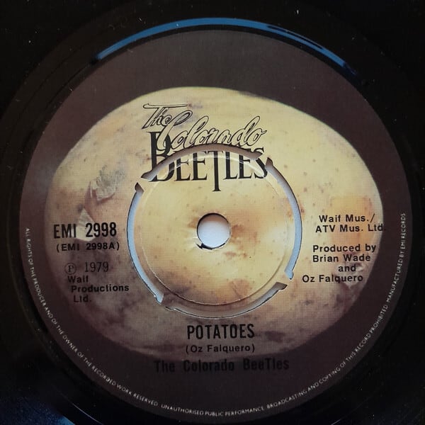 プロデューサーのOz Falqueroと職業作曲家のBrian Wadeが制作した何かのノベルティシングル。ロゴやレーベルはビートルズのパロディですが、音の方はまったくビートルズ的ではなく、A面はプレ・ニューウェイヴでポテト愛を歌い上げ、B面はスパニッシュ調の小曲。ただ両方とも極めて音数が少なく洗練されていて、コミカルながらもソリッドなサウンドがとても楽しいです。