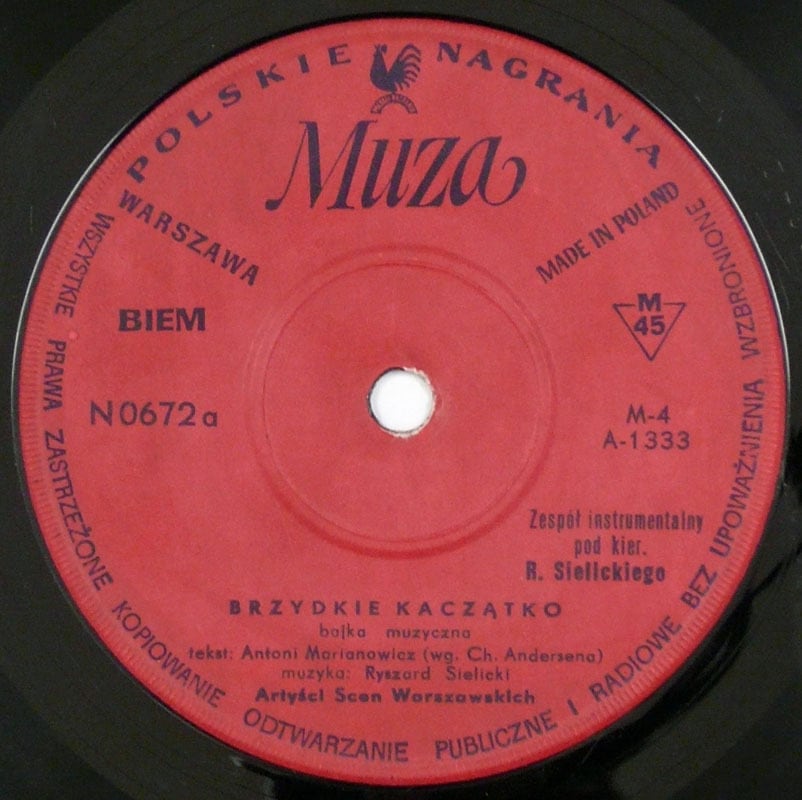 60年代? バードジャケ。アンデルセン童話 "みにくいアヒルの子" の子供向けドラマレコ。ポーランドの作家 Antoni Marianowicz による脚色で、歌やBGM付きの演出。音楽担当は Ryszard Sielicki。