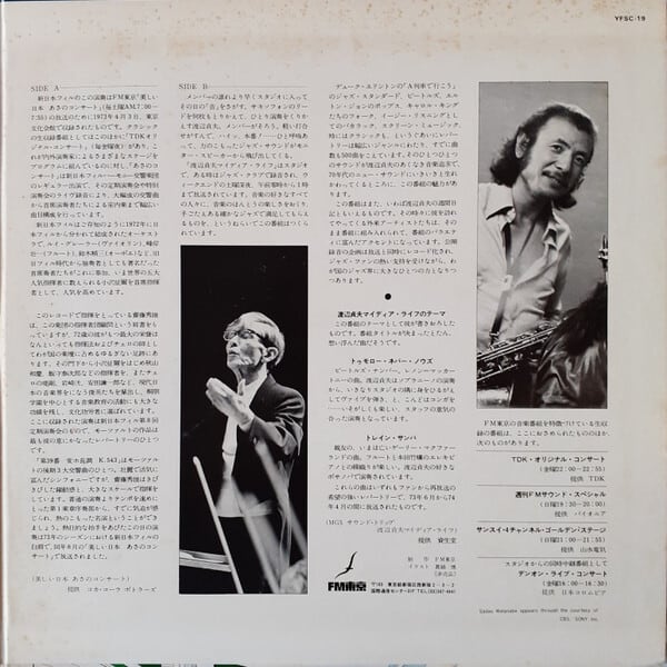 FM東京新局舎開設記念非売品レコード。真鍋博による美しいゲートフォルドジャケット。両面とも、番組独自に録音されたオリジナル音源が収録されている。A面は新日本フィルによるモーツァルト、B面は渡辺貞夫の番組マイディア・ライフのために書き下ろしたテーマ曲を2テイク、そしてこのために収録されたトゥモロー・ネバー・ノウズ、トレイン・サンバも収録!