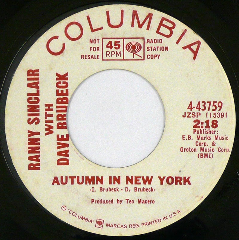 詳細不明のロリータ&ウィスパーヴォイスのジャズシンガー、ラニー・シンクレアの4枚存在するというシングルのうちの一枚。本作ではピアニスト、デイヴ・ブルーベックとのダブルクレジット。これこそが洒脱!なスウィングジャズA面、しっとりと切ない、まるでサントラのような抒情的なワルツ曲B面。Prod. by Teo Macero。盤質イマイチ特価!