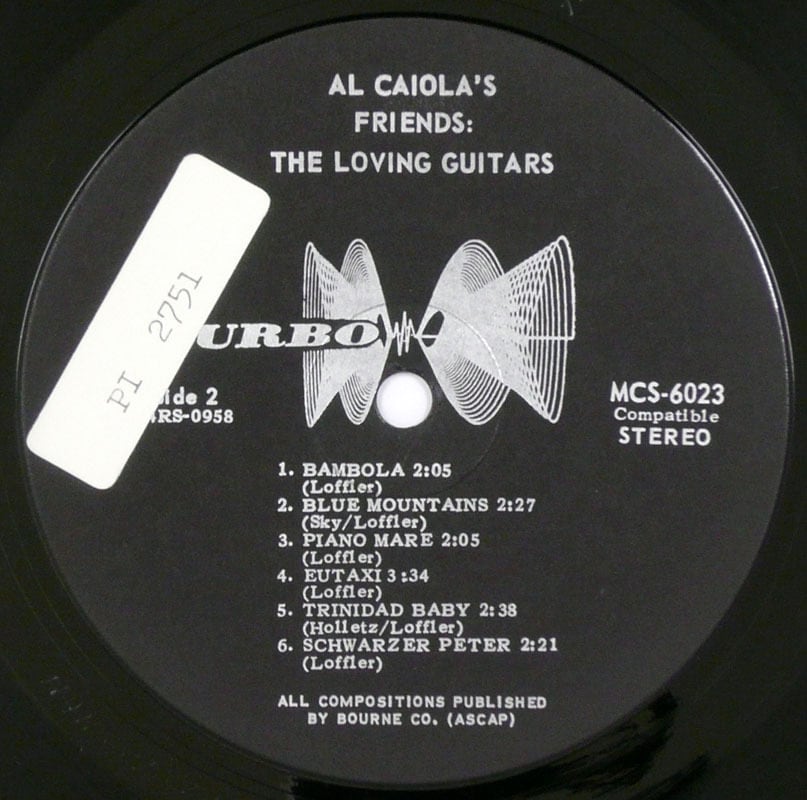 NYのセッションマン、アルカイオラのお友達という触れ込みのこのアルバム、アーチスト名が無記名ですがどうやらドイツのギターウィザード、フランツレフラー (aka Bob Kayser) の作品の編集盤と思われます。音楽出版社のレーベルによるライブラリー系のレコードみたいです。デザイン:Sheldon Freund