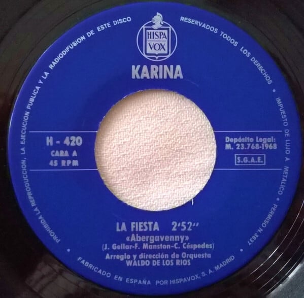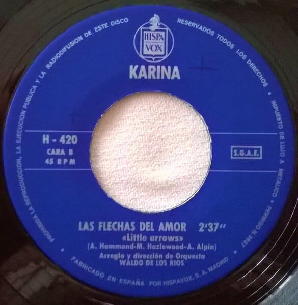 スペイン産Ye-Ye ロリータのカリーナ!舌足らずの甘い声でキュートにコケティッシュに歌っております。当人は割とキッチリ音楽教育を受けている実力派。そのルックスから女優としても活躍しておりました。コード進行の発想が素晴らしい楽しいマーチ曲A面はオーストラリアのJack Gellar & Frere Manstonがオリジナル、B面はLee Hazelwood作曲のLittle arrowスパニッシュカヴァー