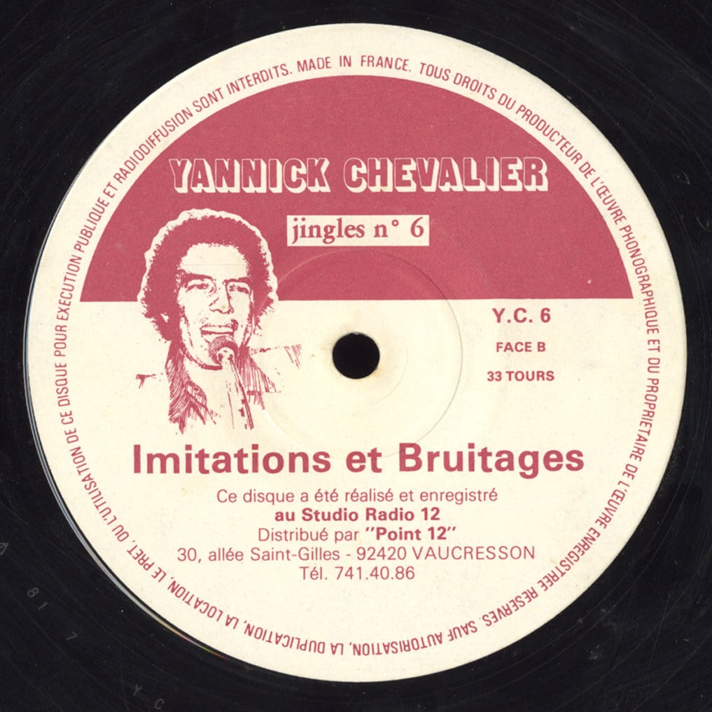 仏盤 80年代? 大胆にもジャケ&レーベルに自分の顔をあしらったヤニック印のフランスのおもちろライブラリー。ディスクジョッキー向けに、テンション高めのジングルやSEなど提供するシリーズの一枚。A面は女声ナレによる Super、Great、Sock it to me とかの一声キューフレーズ集。B面は 1〜11 がなぜか Philippe Chazaly によるミッテラン、ダリとかの物まね声。残りは車、チャイム、シンセ音などの雑多なSE集です。レーベルサンプラー的な A1〜3 の怒濤のカットアップが相変わらずかっこ良し。