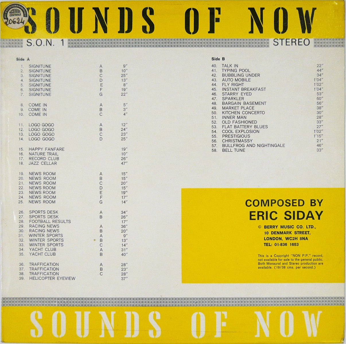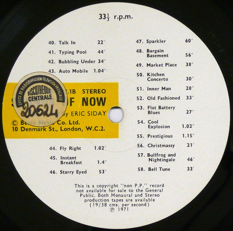 これは衝撃だ! SONOTA認定、世界3大(カワイイ)電子音楽家のひとり! 一般的には知られていないエリック・シデイですが、Eric Siday Musical Creativity Awardな〜んて賞まであるくらいのお方なのです。イギリスでジャズ・フィドラーとしてキャリアをスタートさせたシデイは、FRED WARINGのススメで36年にアメリカへ渡りNBC放送にスタッフ・プロデューサーとして参加、後にアメリカ初のCMジングル制作の会社を設立、ペプシコーラなどのジングルで大成功を納めたそうです。オシレーター、テープループやレジスターなどの現実音をループさせたリズム+電子音。レイモンド・スコットのMANHATTAN RESEARCH INC.みたいな曲やノンキな曲からアヴァンギャルドな曲までホントに楽しいレコードです。64年にいち早くモーグ・プロトタイプシステムを購入(モーグ社の2人目の顧客だった)したのですが、映画『MOOG』でのガーション・キングスレイの話によると、なんとペリキンにモーグを紹介したのがシデイだったとか! PAUL BEAVERと共に電子音楽をポピュラーミュージックに持ち込んだ最重要人物なり! 2枚リリースされたうちの1枚目。