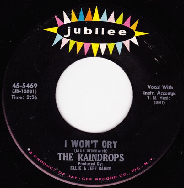US盤 64年。ブリルビルディングの夫婦ソングライターチーム、エリー・グリニッチとジェフ・バリー (とエリーの妹ローラ・グリニッチ)が結成したヴォーカルグループの4thシングル。キャロルキングや、バリーマンらとしのぎを削った二人ですが、ソングライター業のボツ曲をレコードにするという無駄の無い制作システムがこのレインドロップスでした。58年に白人ドゥーワップ・グループThe Moments がリリースした楽曲カヴァーA面と、エリーの自作オールディーズポップB面。