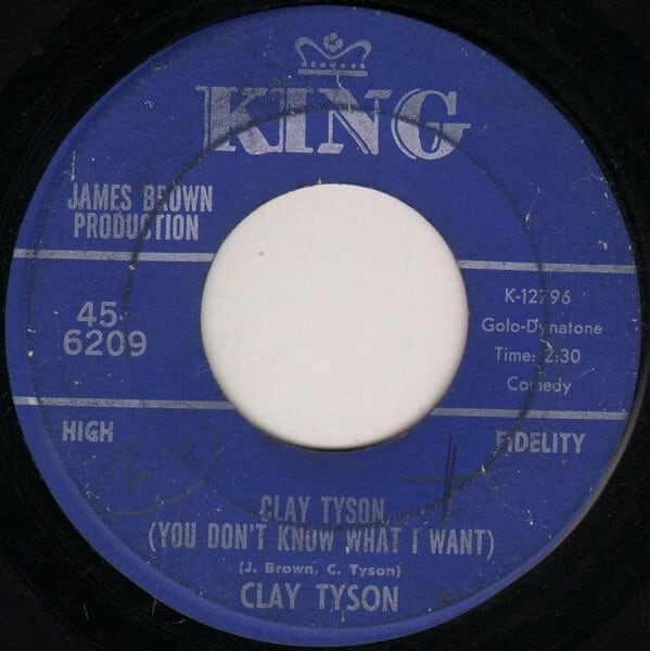 ジェイムズ・ブラウンのファンク名曲「I Can't Stand Myself」のインストの上で、コメディアンのClay Tysonがひたすら喋りまくるシングル。なんとプロデュースがJB本人で、レーベルもしっかりKINGから。Clay Tysonはドゥーワップ歌手でもあり、ジェイムスのライブに同行して前座やMCを勤めていたので、いわば公式ノベルティシングルということになる。AB面同じオケの上で違う内容を喋っている。