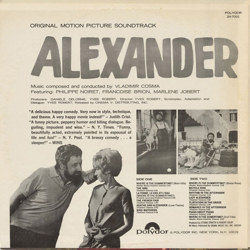 67年のイヴ・ロベール監督「ぐうたらバンザイ」OST。コチラ実はコスマが初めて手掛けたという記念すべきサントラなんです!コスマ節とも言うべきノンキな楽曲のルーツがココにあります。ミシェル・ルグランに憧れてルーマニアからやってきたウラジミール・コスマ。クリスチャンヌ・ルグランいわく、イヤな奴!ですって。ボンヤリ&ホンワカしてる80年代中期くらいまでの作風は最高なんですけどね…。ま、人格についてとやかく言う前にこのユル・メロ聴いて脱力しようよ!ジャケのアートワーク、犬イラストも含め大リコメンドです。