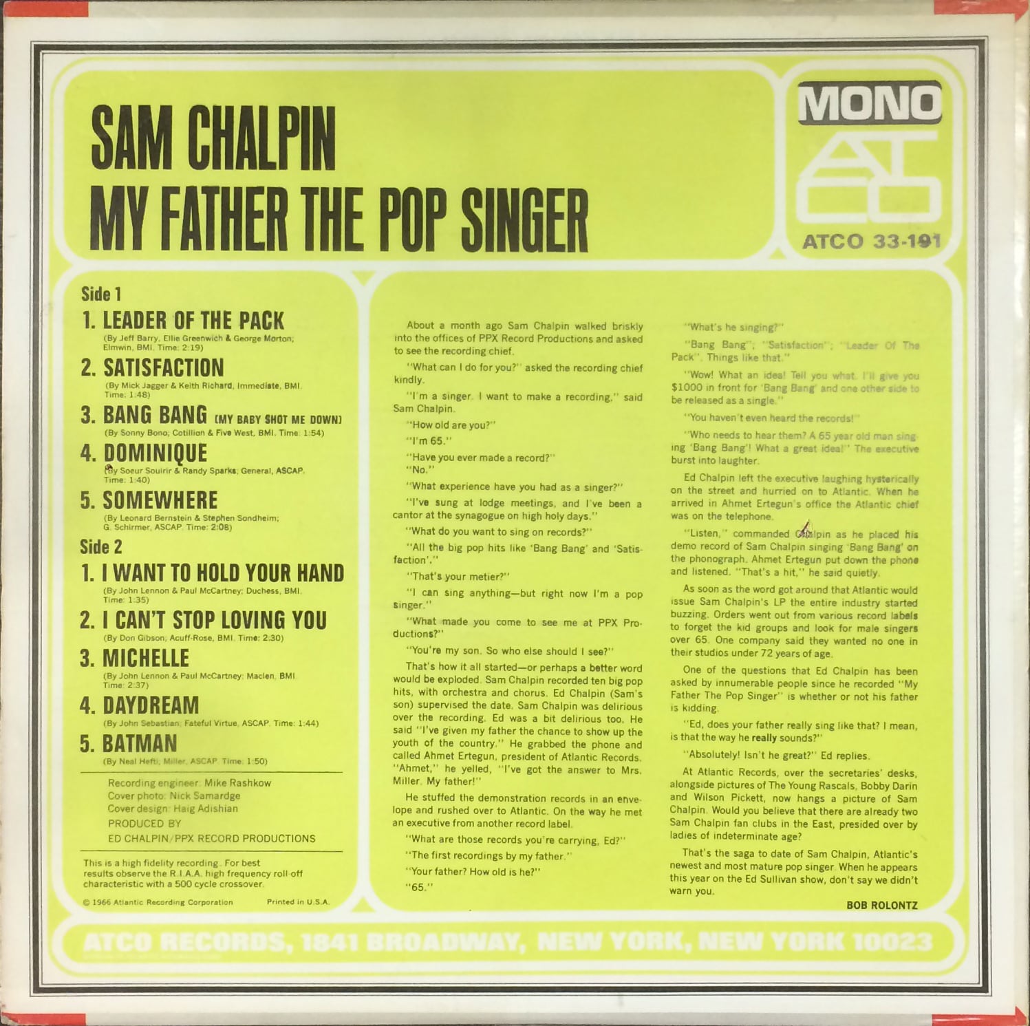 シールド。MONO。同年に "Downtown" の音痴カバーで音楽界を震撼させた Mrs. Miller への素早い返答がこの音痴爺サム!仕掛け人はメジャーデビュー前のジミヘンとも契約を取り付けた PPX Productions の Ed Chalpin。このエドの父親がサムだそうです。収録曲は Mrs. Miller スタイルに習い当時のティーンヒット、Satisfaction、I Want to Hold Your Hand、Batman などをギャップありまくりの浪々としたじじい歌唱でカバー! アトコレーベルということでジャケはソニーボノ風のちんちくりん! promo white label。