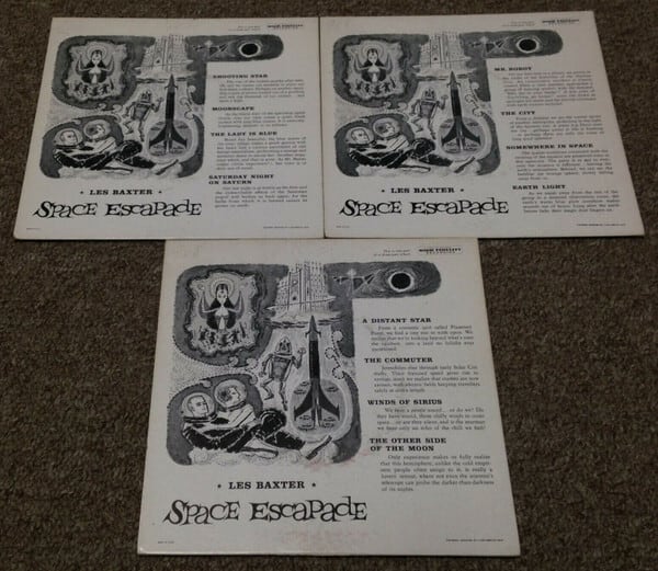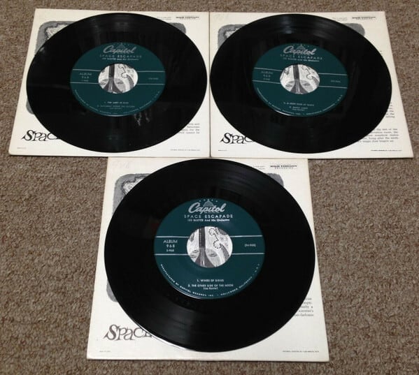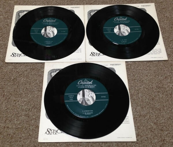 宇宙とラウンジミュージックをエキゾチカという言葉で繋いだSABPM(スペースエイジ・バチェラー・パッド・ミュージック)という解釈。めくるめくストリングスとオーケストレーション、異国=宇宙をイメージしたパーカッション。それだけでまだ誰も見ぬ宇宙を目の前に出現させたその想像力に感服!その大名盤アルバムを3枚の7インチに分けた珍盤。3枚揃っているのはかなりレアです。
