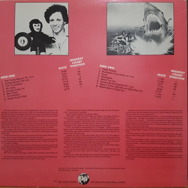サンプリング以前のサンプル手法、ブレイクインを生み出した伝説のパロディスト、ディッキーグッドマンは50年代から数あるヒット曲をぶった切ってブレイクイン! これは50〜80年代の全活動期間を俯瞰できるお得な編集盤。代表作 The Flying Saucer、Mr. Jaws から、マイナー作 Radio Russia、Return of the Jedi Returns (スターウォーズ) まで。ライノ センスなジャケットはハンナ=バーベラ出身の Scott Shaw。
