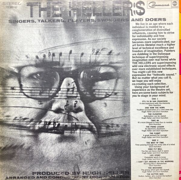 広告制作会社のプロデューサーだったヒュー・ヘラー氏制作による完全無欠のポップストレンジアルバム!ムーグ博士と共同で作った「Helectrronic Studio」で当時最新鋭の機材を揃えて録音された。これまで聴いたことのない奇妙なムーグもの、スポークンやサウンドビットのカットアップ的コラージュ、見事なコーラスワークで彩られたソフトサイケなどを比類ないポップセンスとノベルティ感覚によって繋いだ、どこを取っても完成度の高いトラックばかりが並ぶ奇跡の一枚!絶対持っていたいアルバムです!