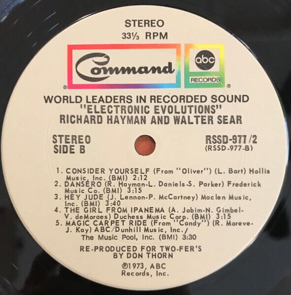 2LP。Genuine Electric Latin Love Machineでおなじみの作曲家Richard Hayman。噂ですがムーグものに関しては実際はWalter Searがほとんどすべてをやっていたらしい。そんなビミョーな二人名義のアルバム。本作は生楽器の比率がかなり高く、Haymanも頑張っておりますよ(たぶん)。