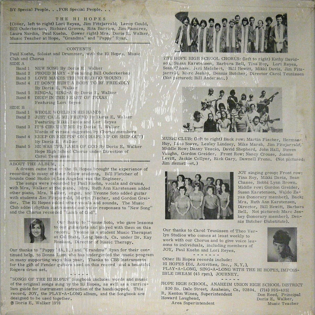 76年に支援者のJohn Higginsらの協力を得て最高に泣けるアルバム「Journey」をリリースしたあと、再び自分たちだけの演奏と歌に戻った障害者学生バンドHi Hopes。73年のファーストアルバムとほとんど同じプリミティヴな演奏と手作りジャケにすっかり戻っちゃって、「レナードの朝」っつーか、そういう寂しさもアリ。でも今回は学校のほかの友人たちがコーラスや楽器で参加して、心から音楽を楽しんでる様子が音からも伺えます。