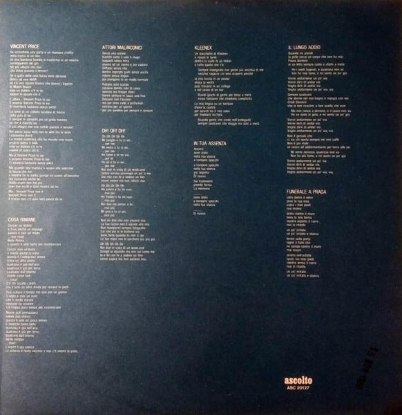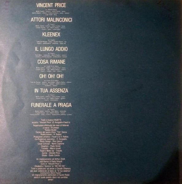 イタリア生まれでアートロックやグラムに影響を受けたアーティスト。何度か活動を停止しながらFaust'oと本名のFausto Rossiの両方で活動しました。ファーストでイタリアらしい演劇性の高いロックを発表した彼ですが、本作ではニューウェイブの影響だと思われる、抑揚の少ないメロディや変拍子へのこだわり、リズムボックスの使用など、ストレンジな楽曲も多く含まれています。