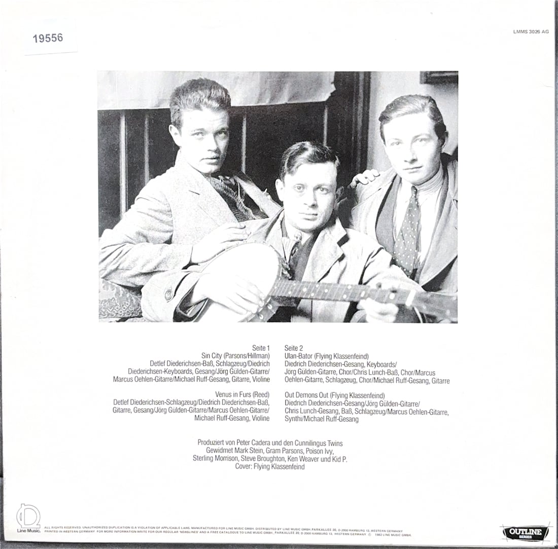 Michael Ruffの強烈な音痴ボーカルが印象的なドイツの実験バンド。自らをパロディバンドと捉え「1955年から現在までのポップの歴史を歪曲する」ことを目指したらしい。VUの原曲破壊カバー含め4曲入り12インチ。この頃は過激なノイズバンドがポップスやロックの解体行為として音痴脱力音源を出すことが静かに流行っていました。静かにですけども。