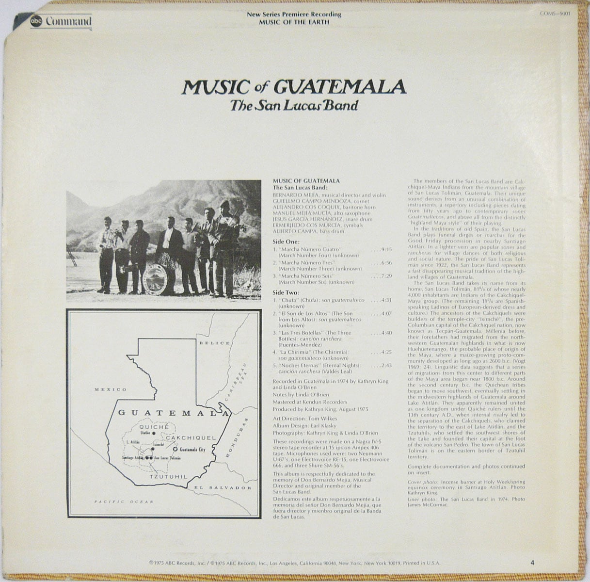 Irwin Chsid氏著の大事故盤カタログ「Key of Z」にも掲載された「グアテマラのポーツマツ・シンフォニア」、1922年にマヤ系インディオにより結成されたアティトラン湖畔のSan Lucas Toliman村のオフィシャル吹奏楽隊で、フィドル担当のリーダーBernard MejiaとバリトンホーンのAlejandro Cos Coquixは結成時からのオリジナルメンバーです。A面はスペイン経由のマーチ (の残骸)、B面は民謡やマリアッチの脱臼演奏を収録。音楽民族学研究者Linda Lee O'Brienと、Kathryn Kingのフィールドワークによる1972年の録音。