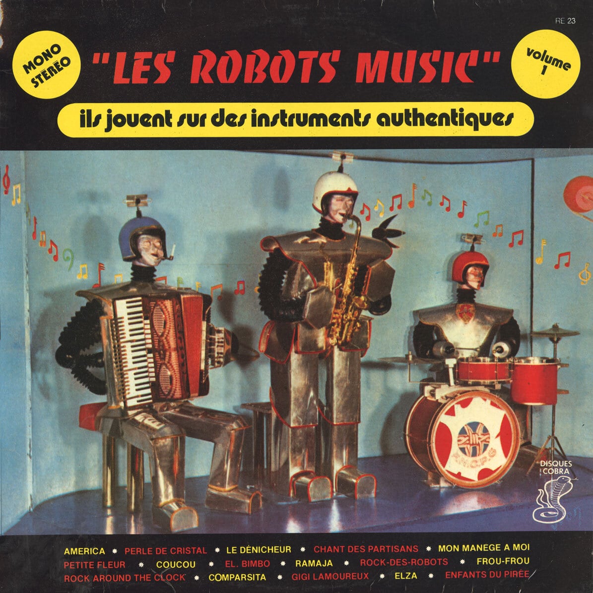 70年代? アコーディオンの Oscar、サックスの Ernest、ドラムの Anatole のロボット三人組。『オレ達がエレクトロミュージックを演奏することはたやすいこと。だからオレ達は敢えて生演奏にこだわるのさ。そしてアコースティックな音の響き、それこそがオレ達が最も愛する音楽なんだ!』。技術の粋を集めたロボットがアナログを選ぶという皮肉。実に人間臭いじゃありませんか。史上最も人間に近づいたロボット達のヒューマンミュージックをどーじょ〜〜!!! 下顔写真は vol. 2 ジャケより。