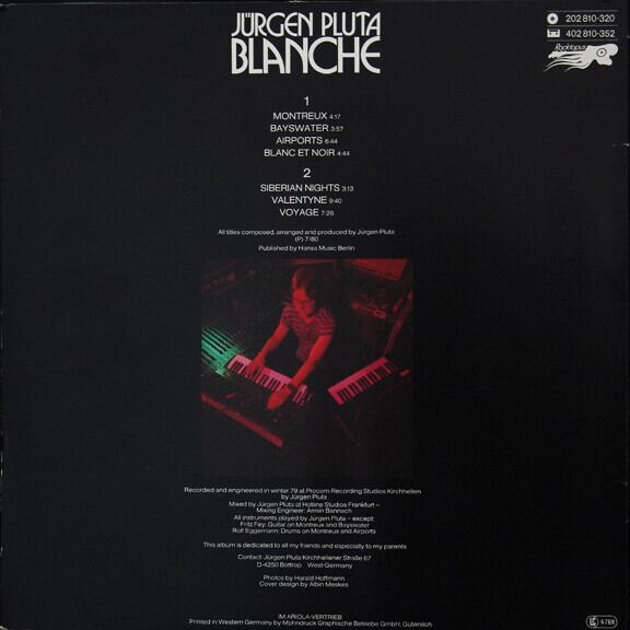 ドイツの鍵盤奏者によるなシンセサイザー作品。自らのバンドPluta Connexionではエレクトロポップもやっていますが、本作ではジャン・ミッシェル.ジャール的なシンセミュージックを展開しています。素晴らしいジャケにはピアノと合体した架空のシンセが写っていますが、裏ジャケではミニムーグを弾いてますね。