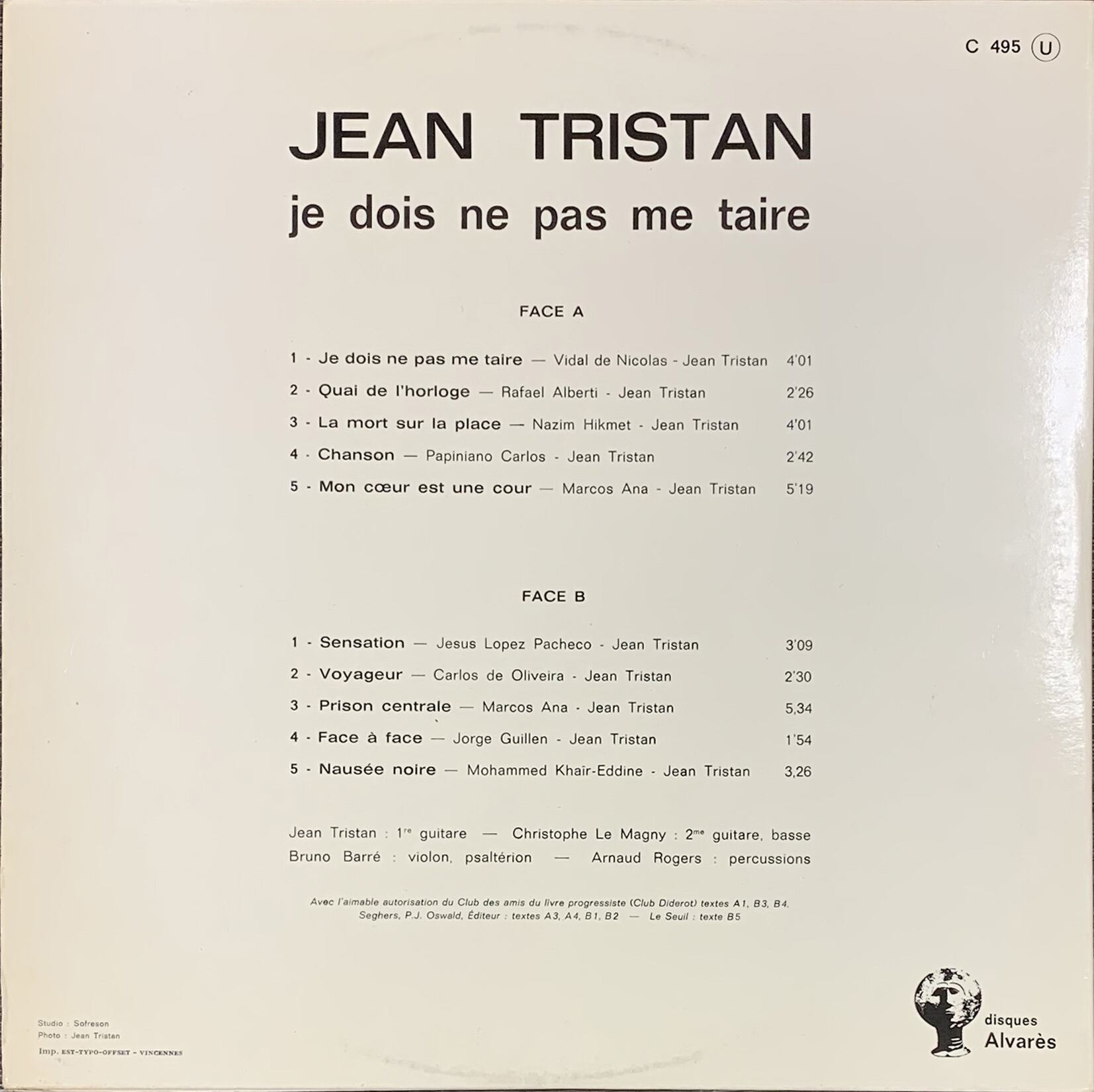 disques Alvares C 495 LP フランス盤 73年?
