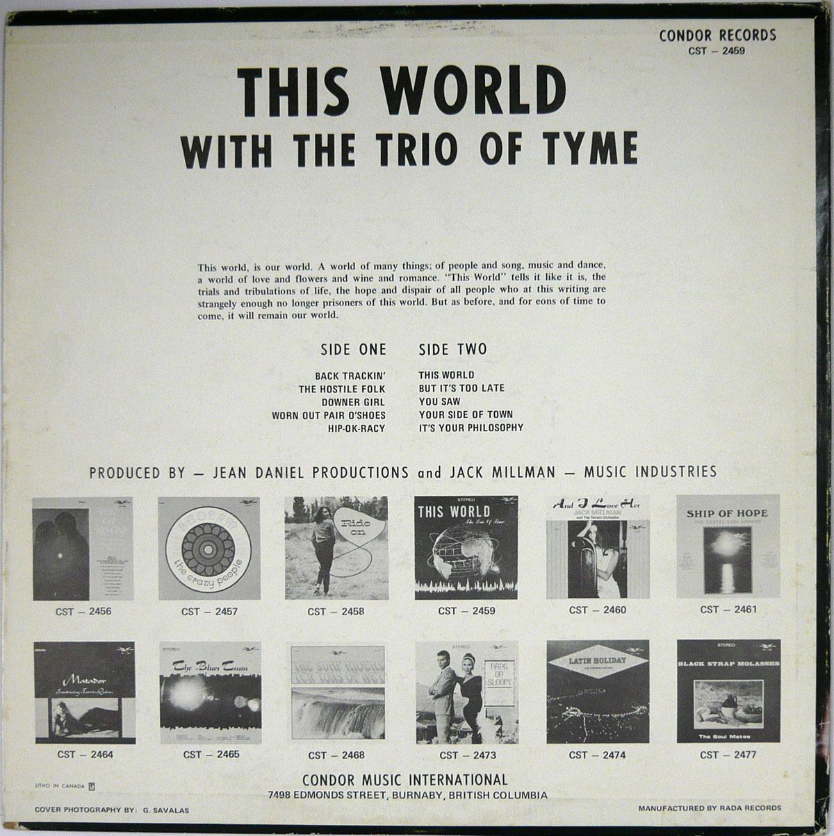 元ジャズトランぺッターのジャックミルマン (aka Johnny Kitchen) 制作のフォークレコード。60年代以降ミルマンは作曲家、プロデューサーとして裏方で活躍していたそうで、自身の税金対策用のダミーレーベルなども運営してました。本作はミルマンのレーベルではありませんが、そんな大人事情で制作されたものの1枚のようで、でっち上げフォークグループレコードです。商売って難しいね! ジャケは'64年のNY万国博覧会の大モニュメント、ユニスフィアですね。下辺の人々のシルエットがちっちぇー。