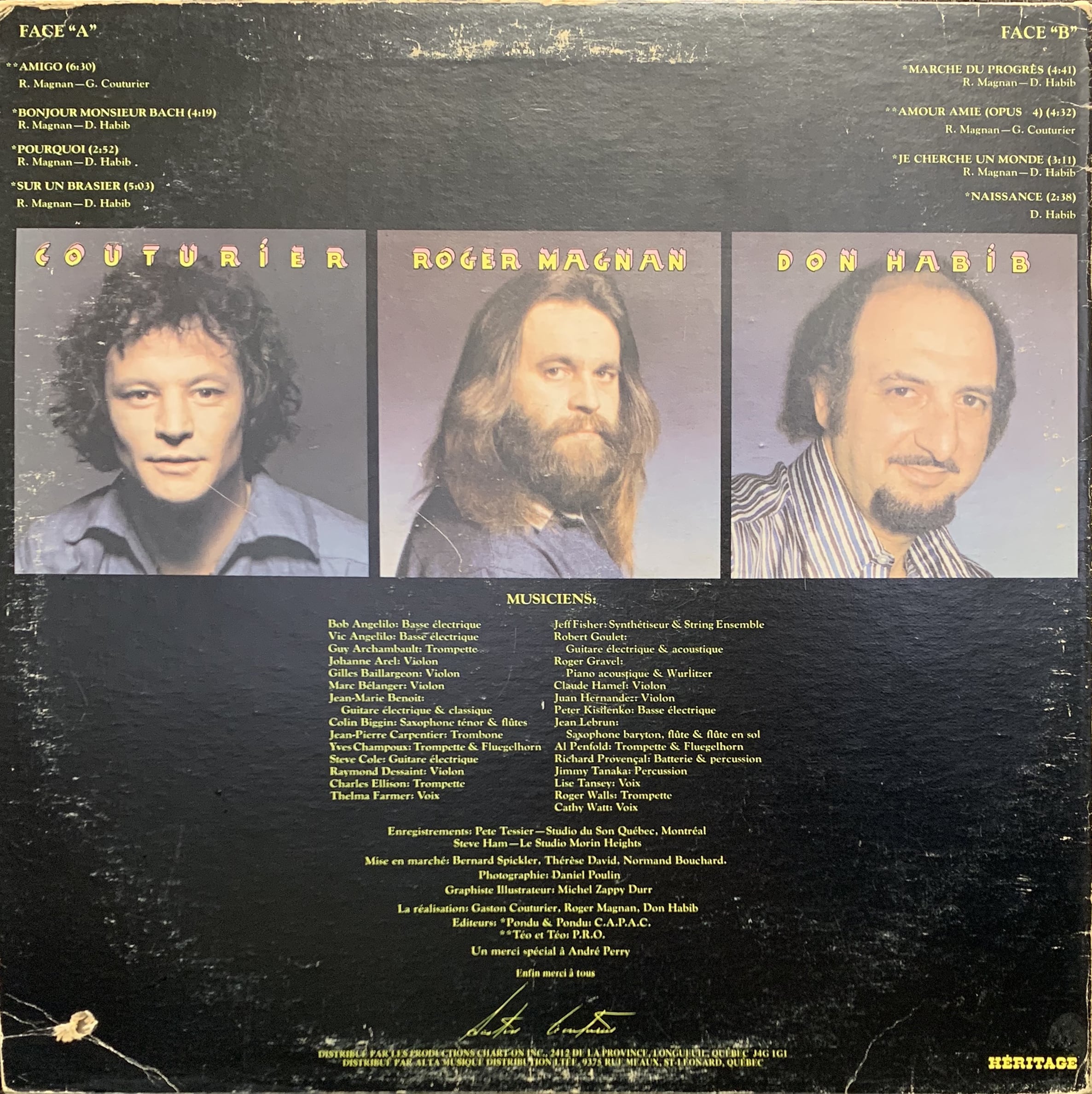 Gaston Couturier率いるケベックのAORバンド。マイナーコードを貴重とする叙情的・情熱的な曲調と歌い回し、かと思うとブラジリアンジャズのような凝ったブラスアレンジが出てきたり、プログレ的なシンセソロやスパニッシュなリズムが導入されたり、聞きどころ多くて鼻血出そうです。