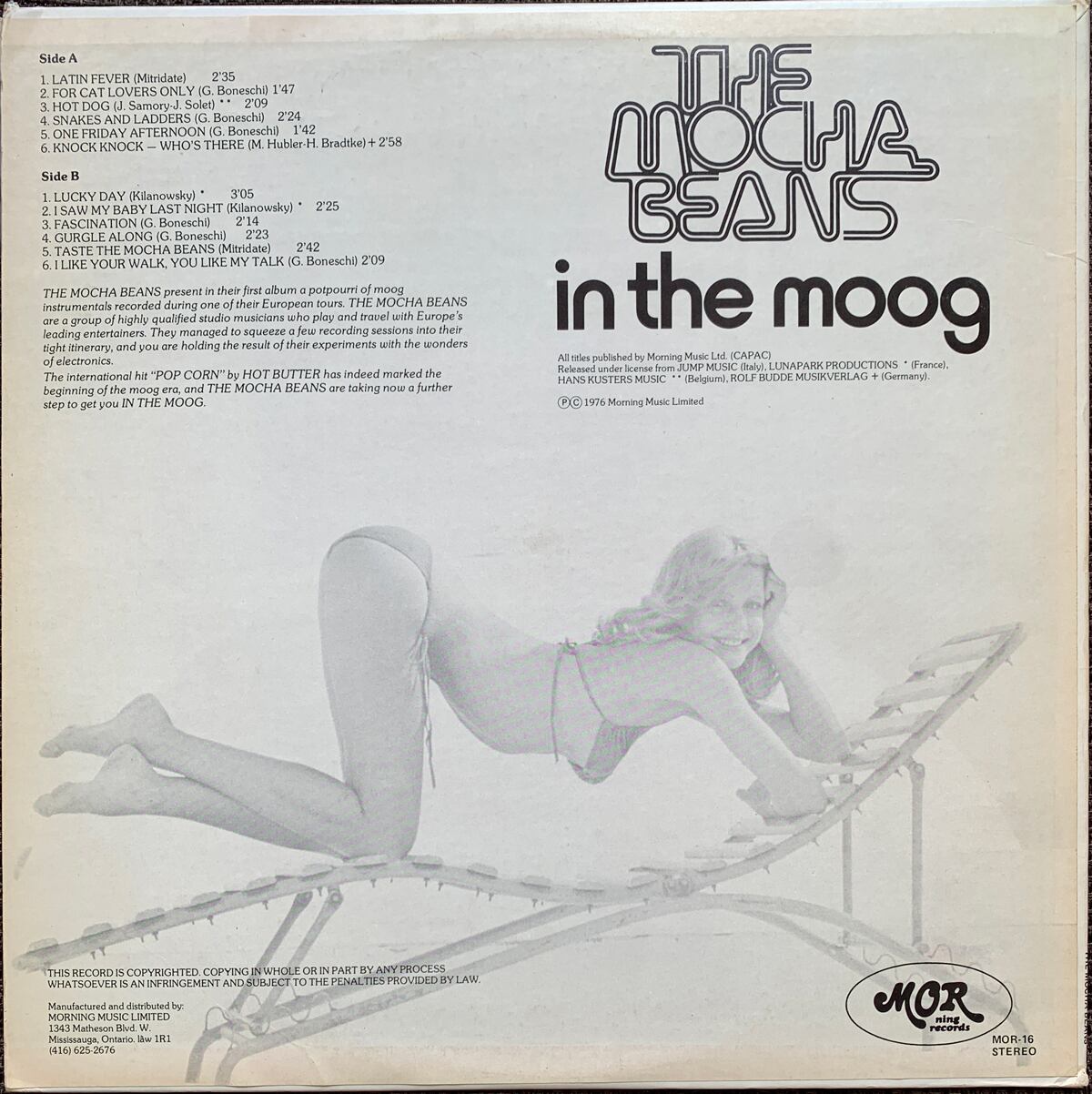 モカビーンズは Hot Butter に続くモーグポップバンドとライナーで紹介されてるけど、収録曲はどうも電子音系のライブラリー音源から集められているようで、架空のバンドの模様。音源はイタリア、フランス、ベルギー、ドイツから国際的な選曲。特にイタリア代表の Giampiero Boneschi は全体の2/3程を占めて、フィーチャーされてます。日光浴のBGMとしてどーぞ!